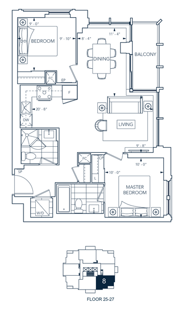 Corner units are often preferred for better exposure. Look at these floorplans below. (You may need to tilt your head.)