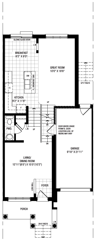 Let's say that this townhouse faces north. There are no exposures from west or east because this house is in the middle of a row townhouse complex. The living area and the two smaller bedrooms on the second floor will stay on the darker and cooler side most of the time (north). Meanwhile, the kitchen area and the master bedroom will be on the brighter and warmer side (south).